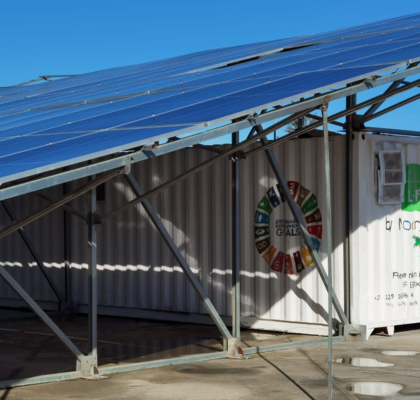 LifeBox is a solar-powered solution, proudly labeled as a "Solar Impulse Efficient Solution". All-in-one unit that provides clean energy and safe water for irrigation, desalinated water for domestic and livestock consumption, and 24/7 clean electricity for households.